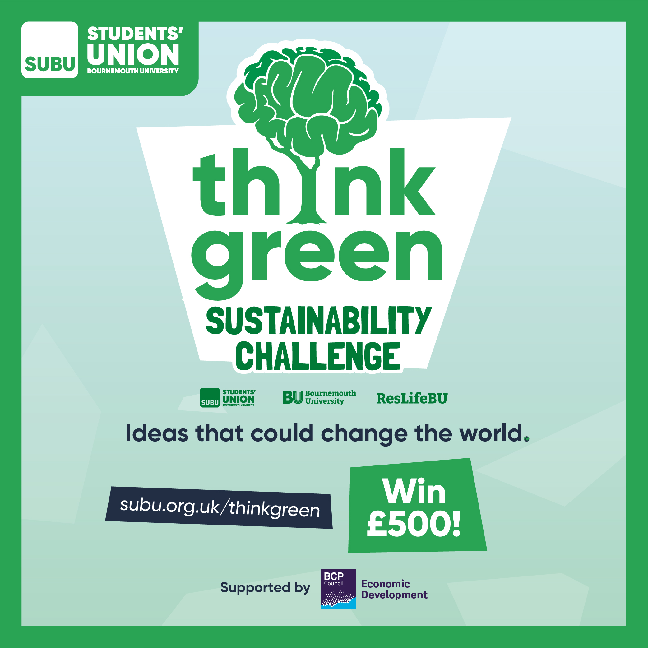 The Sustainability Challenge is an opportunity for entrepreneurs to come together and create an idea to make the university campuses more sustainable. For students considering taking part in this competition it is also: A chance to inspire and help Bournemouth University become more environmentally sustainable • A chance to work across disciplines with students from other faculties or departments, and create an interdisciplinary and innovative idea • An opportunity to win prizes • An experience that will give you new skills, new contacts and impress future employers