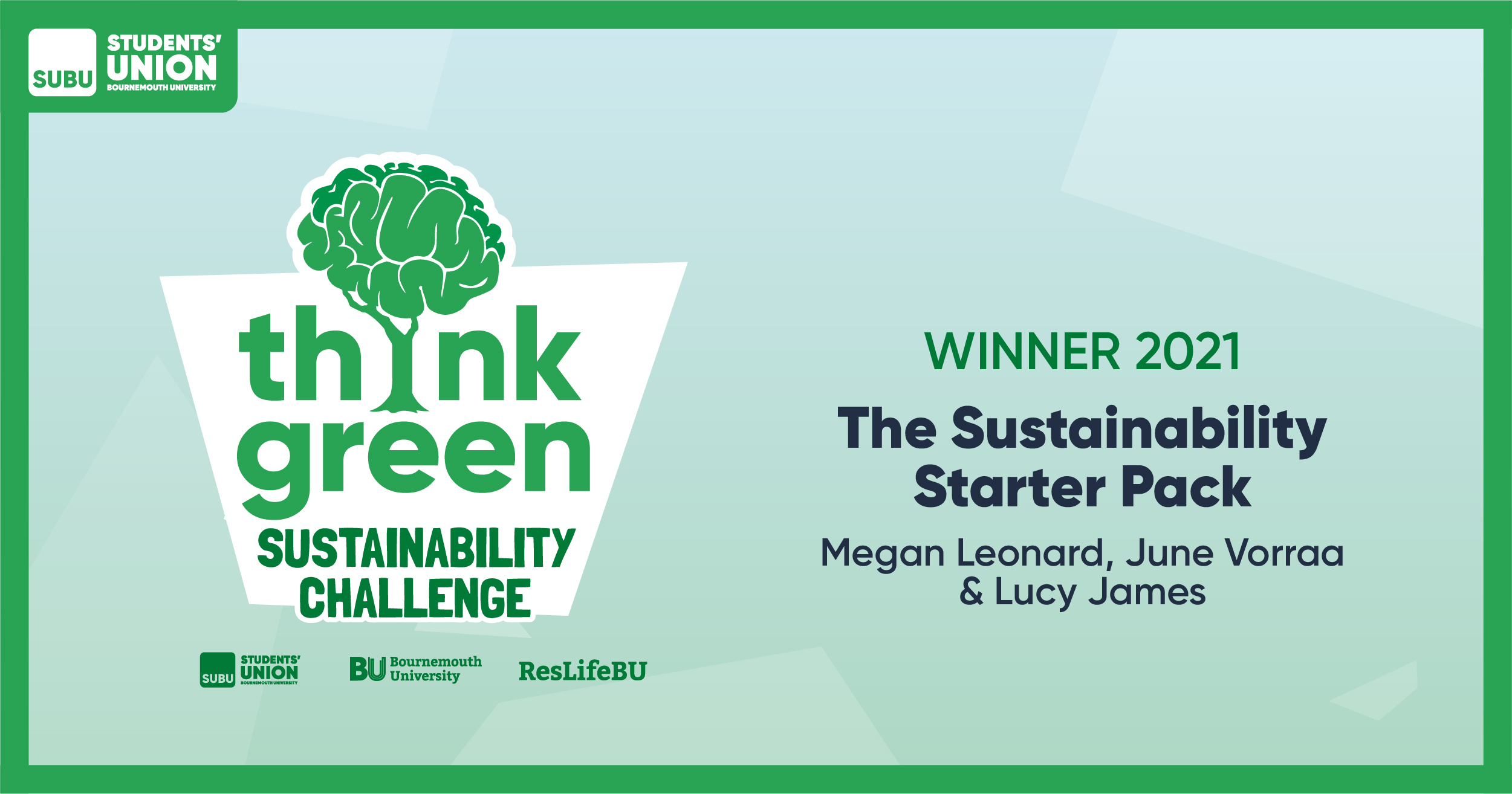 The winning idea for 20-21 was a 'Sustainability Starter Pack' to be given to all BU students to help them live more sustainably whilst at BU. Other ideas were a plant based campus, a re-fill shop and a book swap. This about something you are passionate about, be as creative as you like!