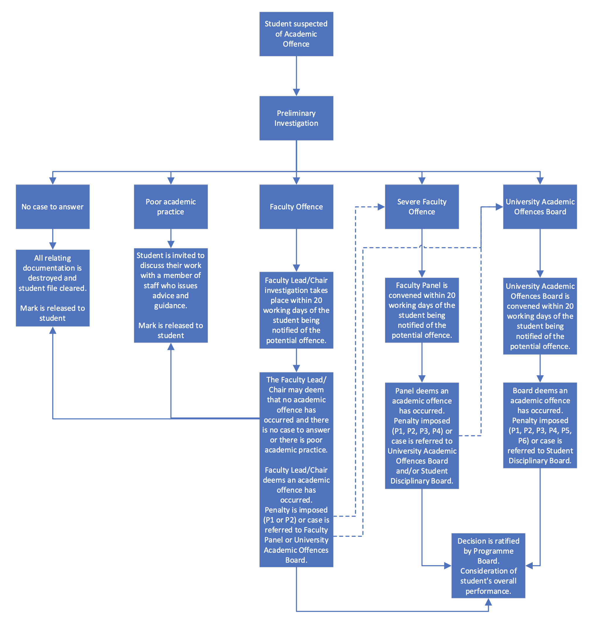 Academic offences can consist of plagiarism, collusion, cheating, inappropriate use of AI and any other breaches of assessment regulations.